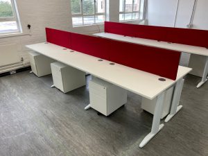 20 – BENCH DESKS IN PODS OF 4+6+8 – WHITE TOPS+ FRAMES -1200MM X 800MM – PERSON