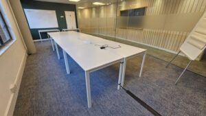 BEAMTEC WORKSTATIONS – WHITE + SILVER – PEDESTALS AVAILABLE
